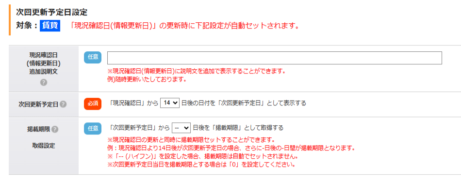 掲載期限と同時に現況確認日・次回更新予定日も更新される。